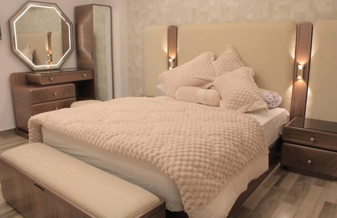 Situated at a distance of 2.9 km from El-Andalus, the 3-room Shka Fndkia Mfrosha Doblix Balmhndsin provides guests with Wi-Fi for either business or leisure. Orman Botanical Gardens is located nearly 10 minutes away by car and Cairo International airport is located 25 km from the apartment.